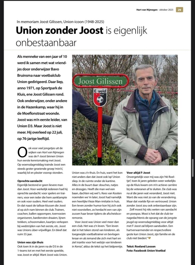 Een mooi artikel over ‘onze’ Joost in het Hart van Nijmegen. We hopen dat Joost van boven nog steeds meekijkt kan genieten van het voetbalplezier